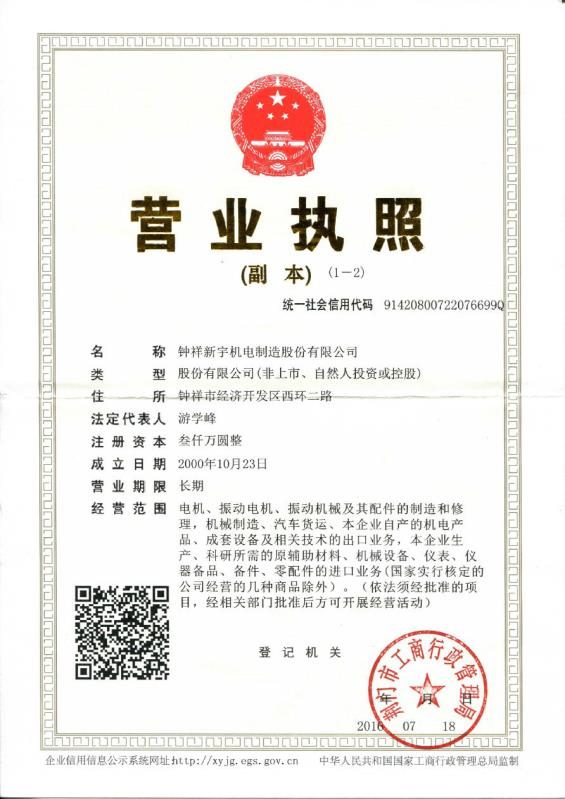 鐘祥新宇機(jī)電制造股份有限公司——中國(guó)大型振動(dòng)電機(jī)生產(chǎn)基地!聯(lián)系人:宋文耀(經(jīng)理)電話:0724-4231097 13607265083