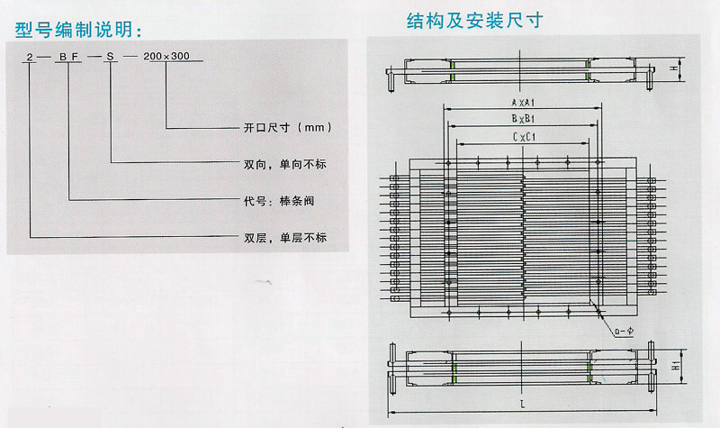 本閥主要由框架、棒條組成,當棒條插入框架上,則一組棒條組成一平行柵板,將塊狀物料阻擋在閘門一側,若抽出一條則柵板出現一條較大的空隙,物料就可以從該空隙進入閘門的另一側,抽出棒條的多少應由工藝流程的需要來決定。